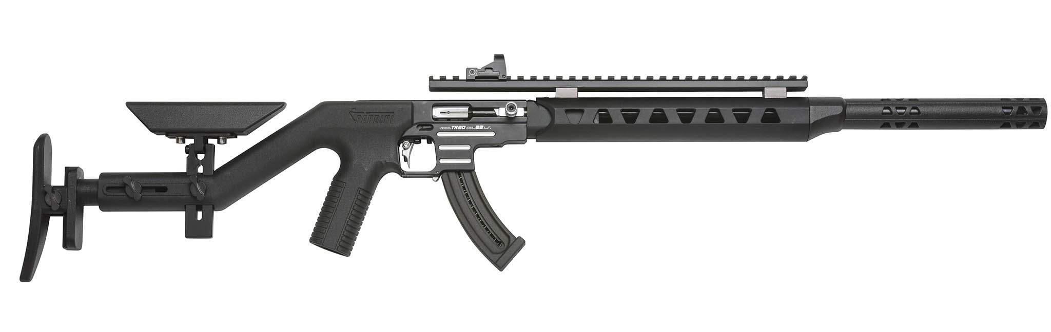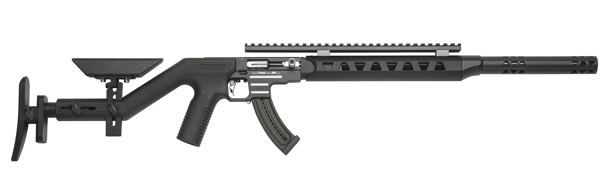 TR20 500 is a semi-automatic rifle designed for recreational and sport shooting in Mini rifle and Tactical scope 22 disciplines. It's based on the frame of the SP pistol, from which it inherits the blowback system and the trigger that can be adjusted in every parameter. Equipped with a 500 mm Match barrel with a muzzle compensator, it features an ergonomic handle with an adjustable butt plate made of reinforced nylon. Above the aluminum barrel cover there is a long Picatinny rail for the application of all kinds of optics. TR20 comes with two 10-round magazines; as an option, 15 and 20-round magazines are available, and 29-round magazines are available upon request.